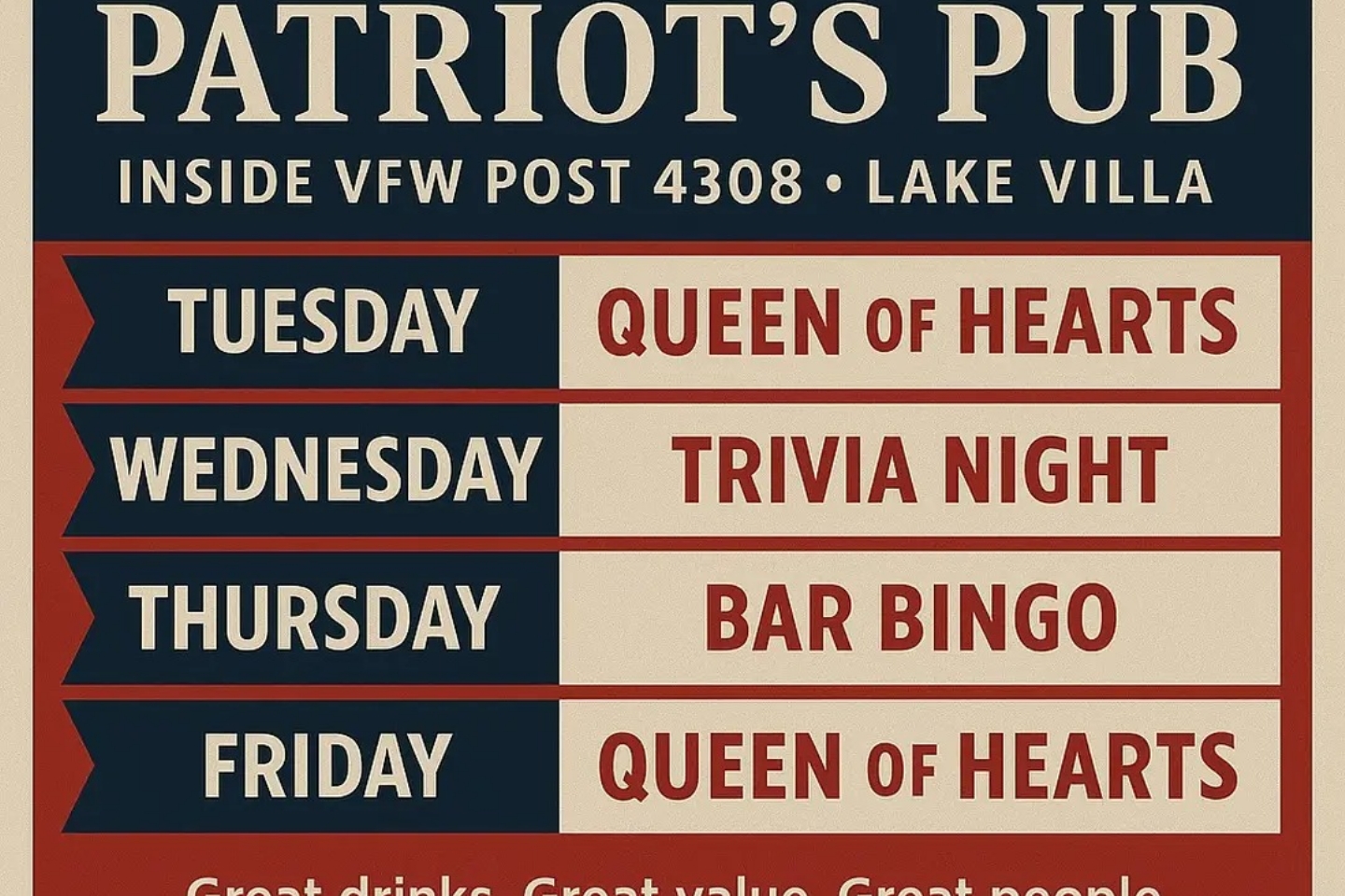 Queen of Hearts Raffle, drawing every Tuesday and Friday 6:30pm. Tickets for sale daily for the following drawing.